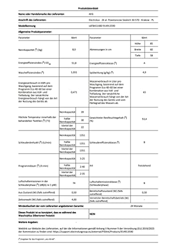 AEG Series 6000 L6FBA51480 washing machine Front-load 8 kg 1400 RPM White