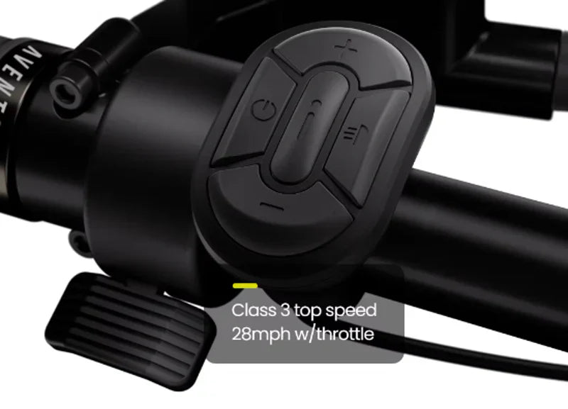 The Full Color Display keeps you up-to-date with all your vital metrics, including speed, battery life, pedal assist level, and syncs your phone to connect with a larger Aventon community. It even charges your phone via its concealed USB port!